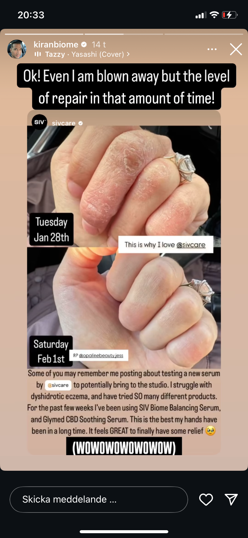 barriär och mikrobiom, vilket gör det kompatibelt med de flesta hudvårdsrutiner. Dock ska du tänka på att om du använder någon form av bakteriedödande produkt (obs: bakteriedödande ämnen skiljer inte på bra och dåliga bakterier) så är SIV sporbakterier och då blir det kontraproduktivt.
